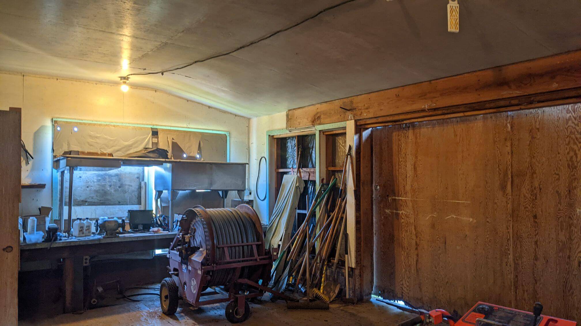 The classic old farm look, with wide open spaces, trees and a creek. This farm is 23 acres with a massive old pole barn, a milking shed, a wooden shelter and two stone silos. None of the structures are in great condition, but they have oh so much patina and character. The house is available for an extra fee.